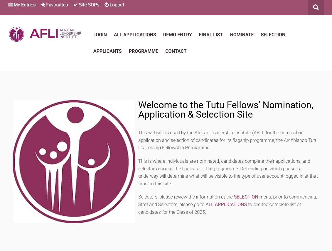 This site was commissioned to manage the nomination, application, and selection of candidates for the Archbishop Tutu Leadership Fellowship Programme. A closed site for data privacy, it securely manages around a thousand applications yearly, as well as automated batch notifications regarding the selection process.