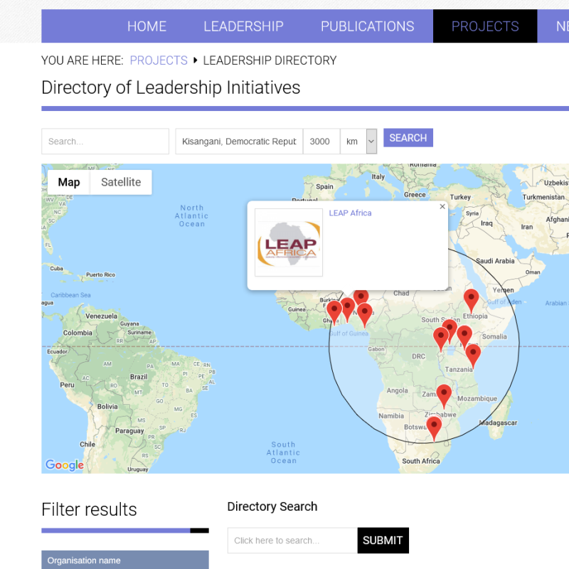 The African Leadership Institute commissioned a study to track every leadership training programme across Africa. This pan-African directory lists each programme and provides fine-grained filtering for type, country, numbers, etc.